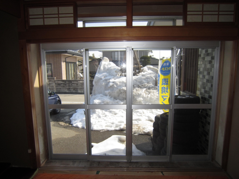 この度は、冬を迎える前に当社の休憩室のテラス窓(W2800×H2200ランマ付)を
